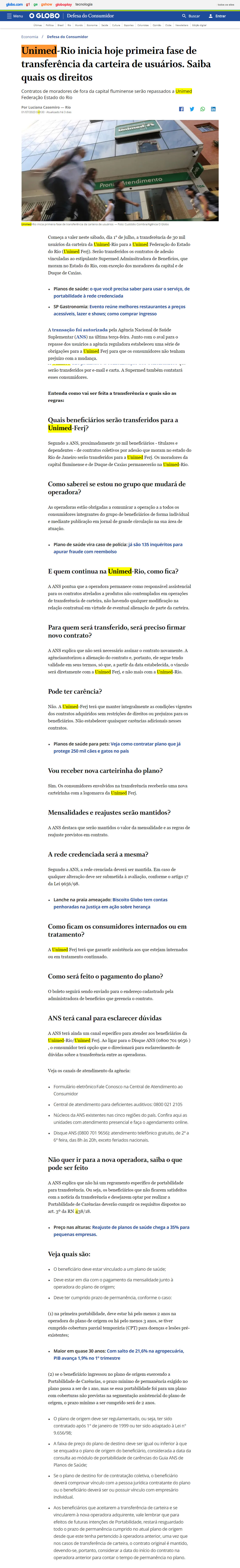 UNIMED-RIO INICIA HOJE PRIMEIRA FASE DE TRANSFERÊNCIA DA CARTEIRA DE USUÁRIOS. SAIBA QUAIS OS DIREITOS