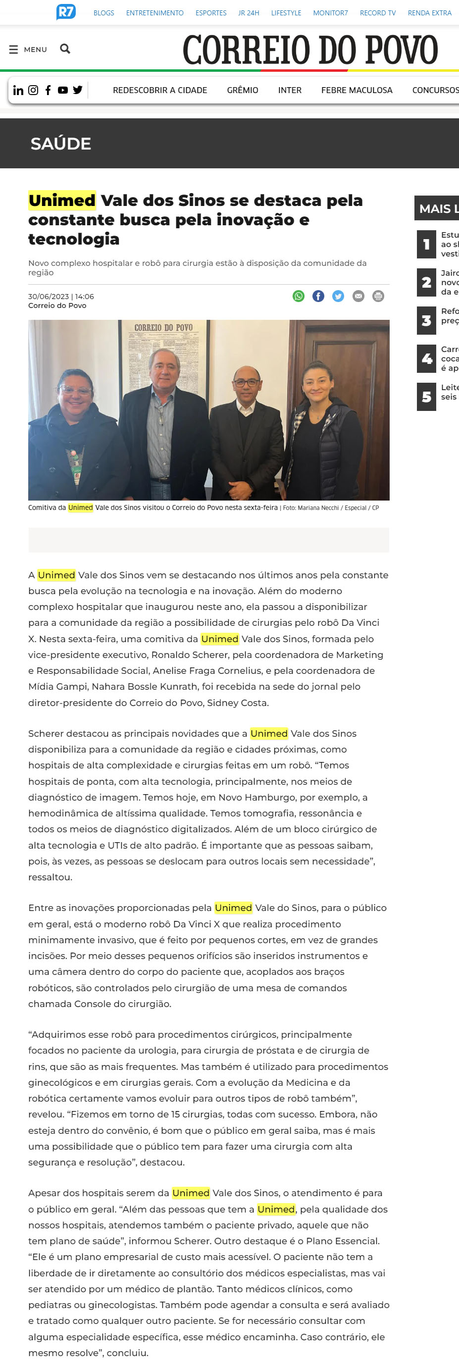 NOTÍCIAS - UNIMED