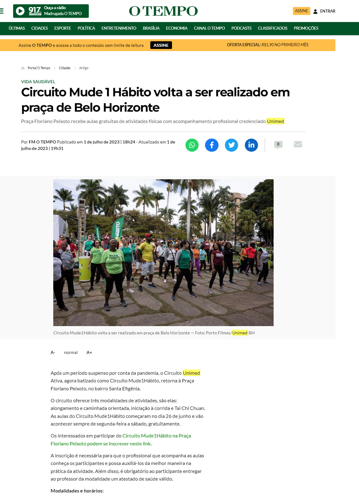 CIRCUITO MUDE 1 HÁBITO VOLTA A SER REALIZADO EM PRAÇA DE BELO HORIZONTE