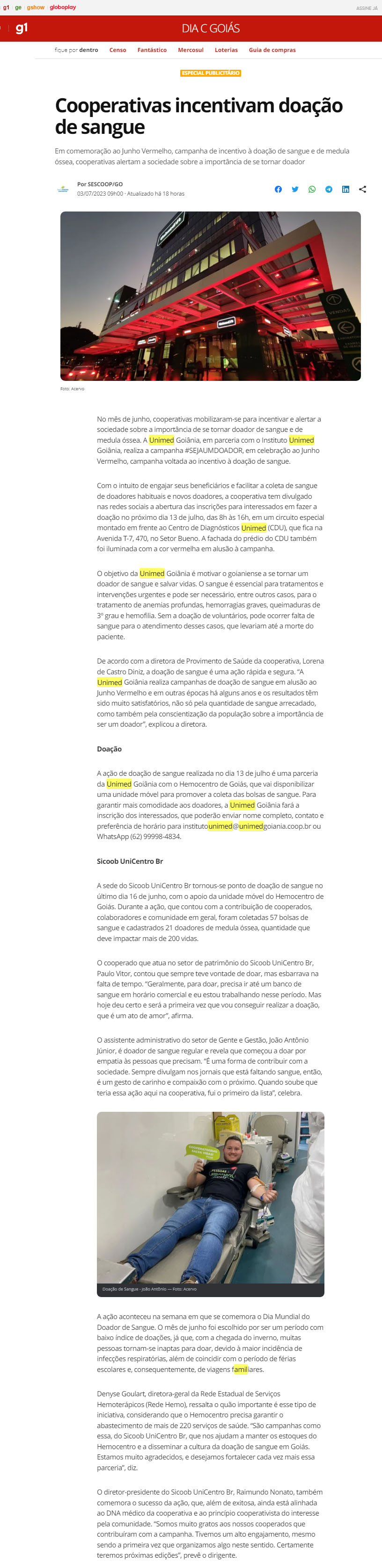 COOPERATIVAS INCENTIVAM DOAÇÃO DE SANGUE