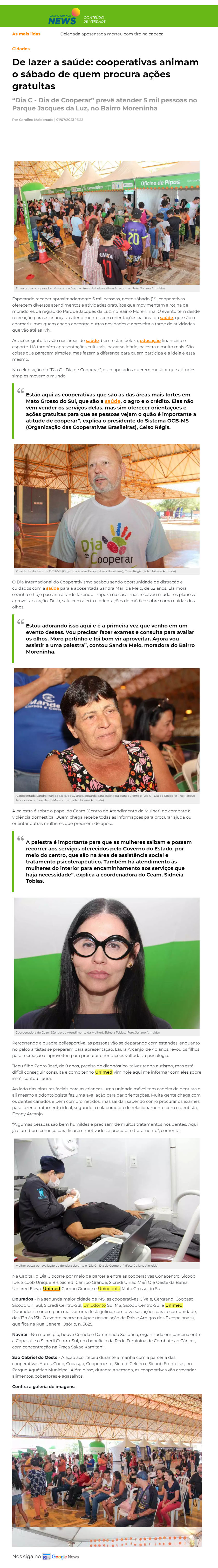 DE LAZE A SAÚDE COOPERATIVAS ANIMAM O SÁBADO DE QUEM PROCURA AÇÕES GRATUITAS