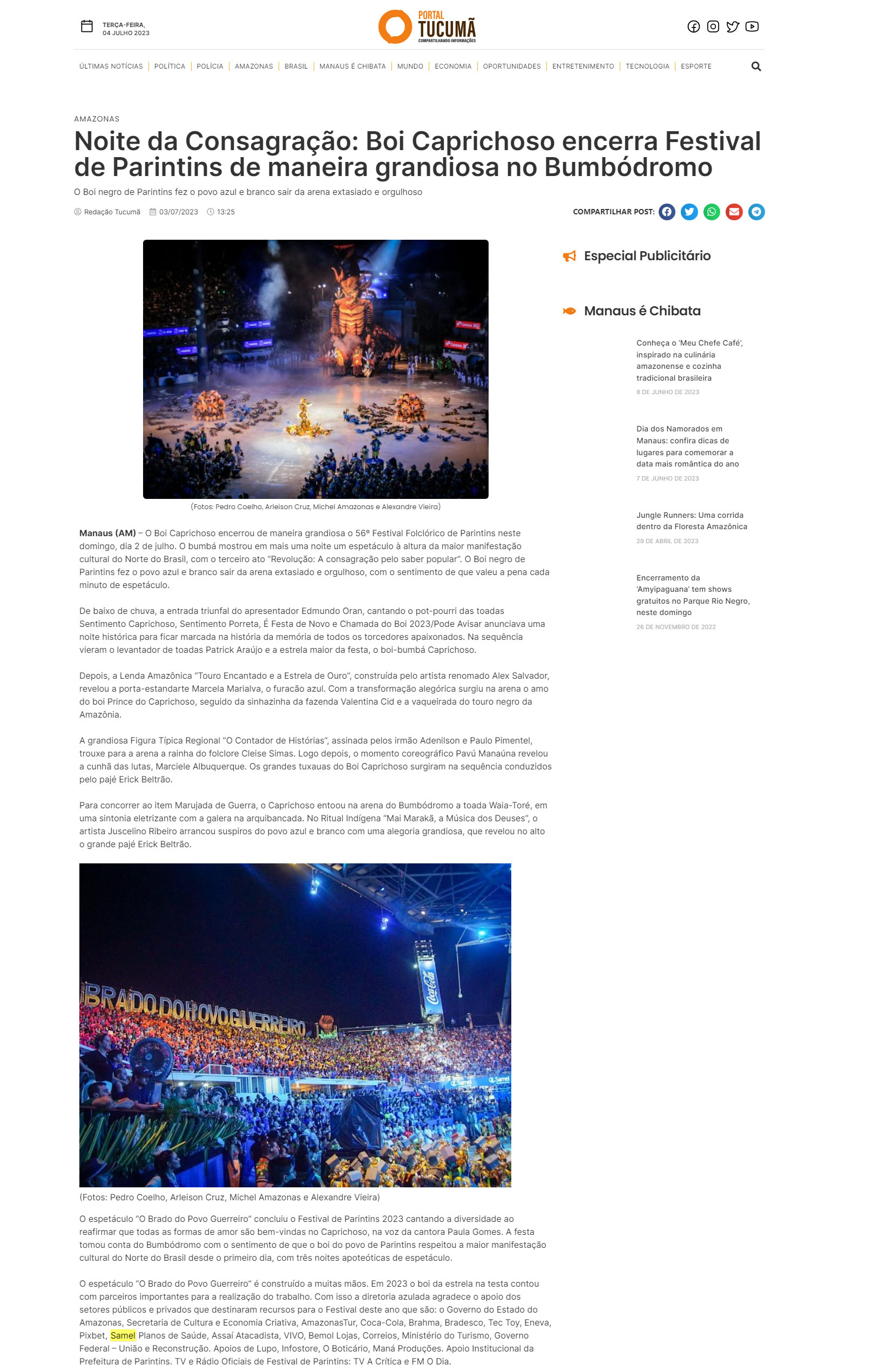 NOITE DA CONSAGRAÇÃO BOI CAPRICHOSO ENCERRA FESTIVAL DE PARINTINS DE MANEIRA GRANDIOSA NO BUMBÓDROMO