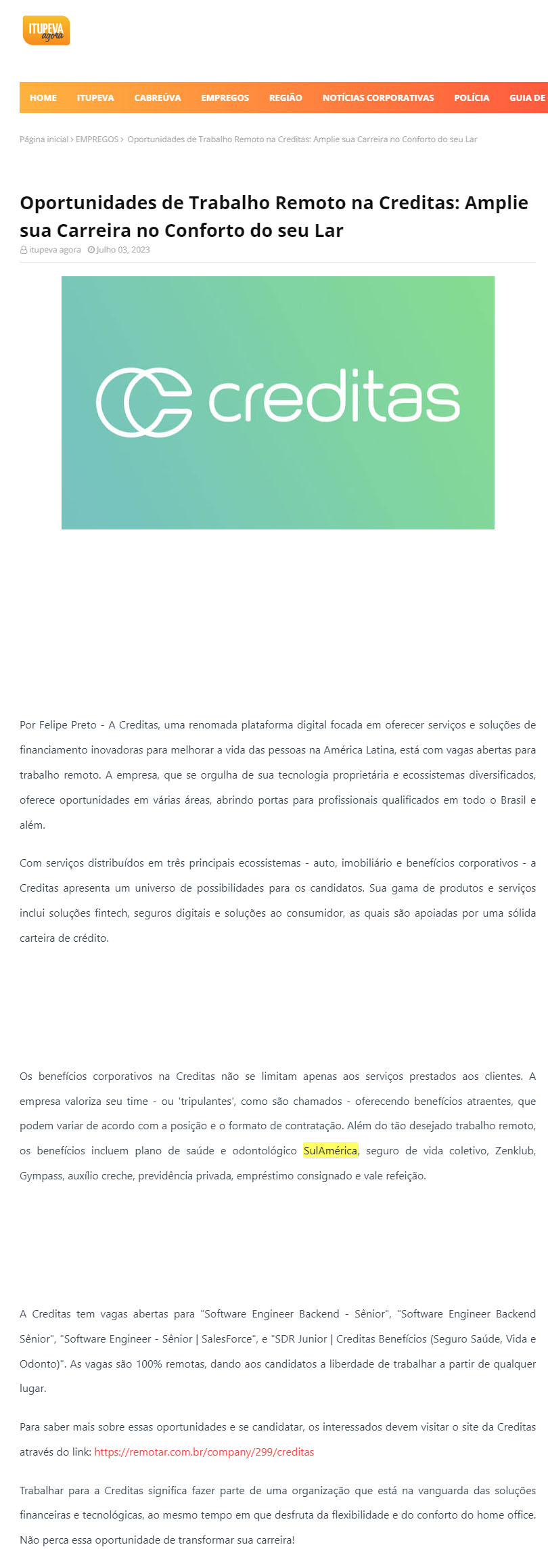 OPORTUNIDADES DE TRABALHO REMOTO NA CREDITAS AMPLIE SUA CARREIRA NO CONFORTO DO SEU LAR
