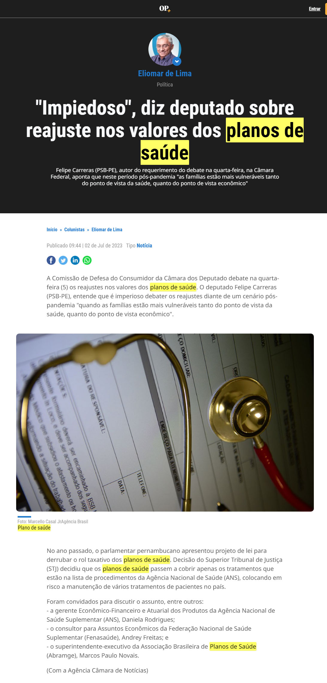 MPIEDOSO, DIZ DEPUTADO SOBRE REAJUSTE NOS VALORES DOS PLANOS DE SAÚDE
