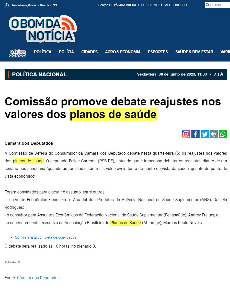 COMISSÃO PROMOVE DEBATE REAJUSTES NOS VALORES DOS PLANOS DE SAÚDE