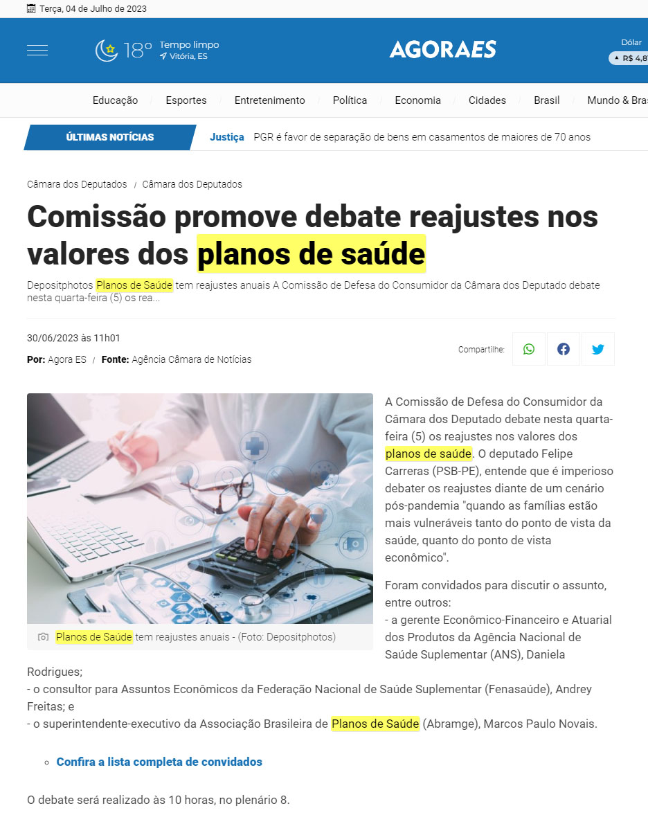 COMISSÃO PROMOVE DEBATE REAJUSTES NOS VALORES DOS PLANOS DE SAÚDE