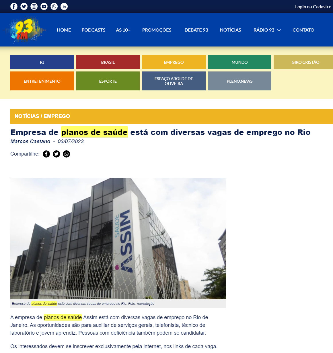 EMPRESA DE PLANOS DE SAÚDE ESTÁ COM DIVERSAS VAGAS DE EMPREGO NO RIO