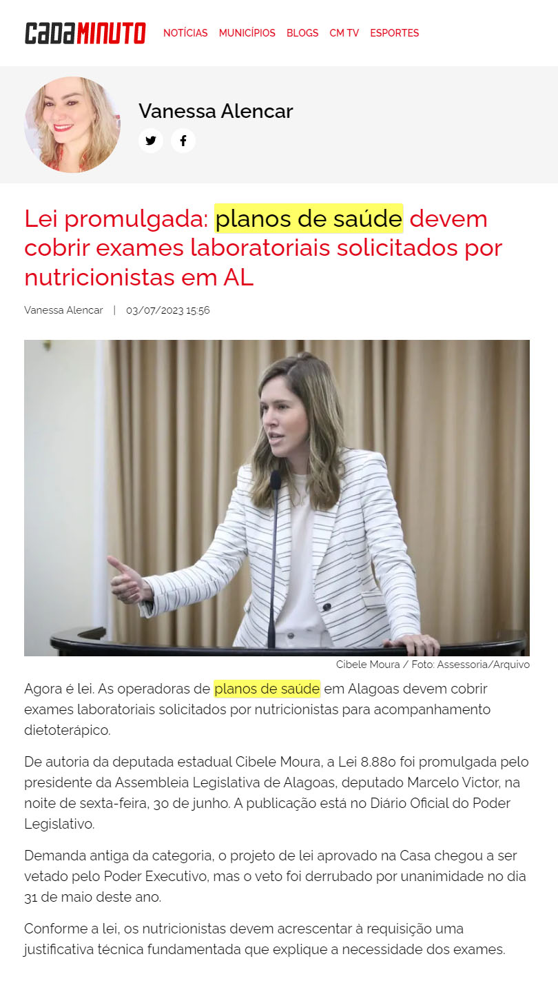 LEI PROMULGADA PLANOS DE SAÚDE DEVEM COBRIR EXAMES LABORATORIAIS SOLICITADOS POR NUTRICIONISTAS EM AL