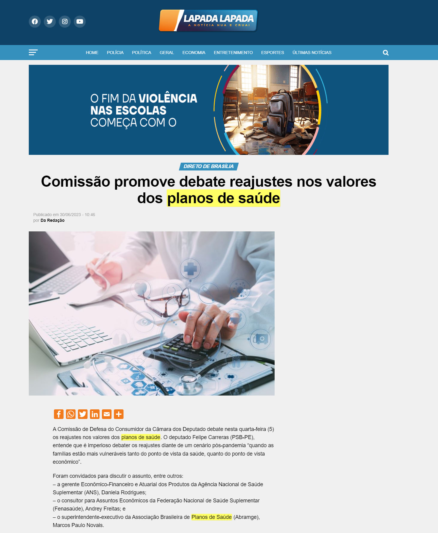 COMISSÃO PROMOVE DEBATE REAJUSTES NOS VALORES DOS PLANOS DE SAÚDE