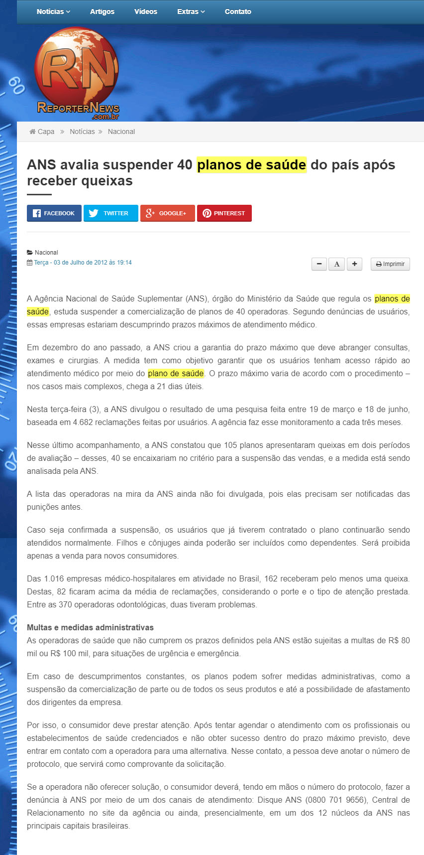 ANS AVALIA SUSPENDER 40 PLANOS DE SAÚDE DO PAÍS APÓS RECEBER QUEIXAS